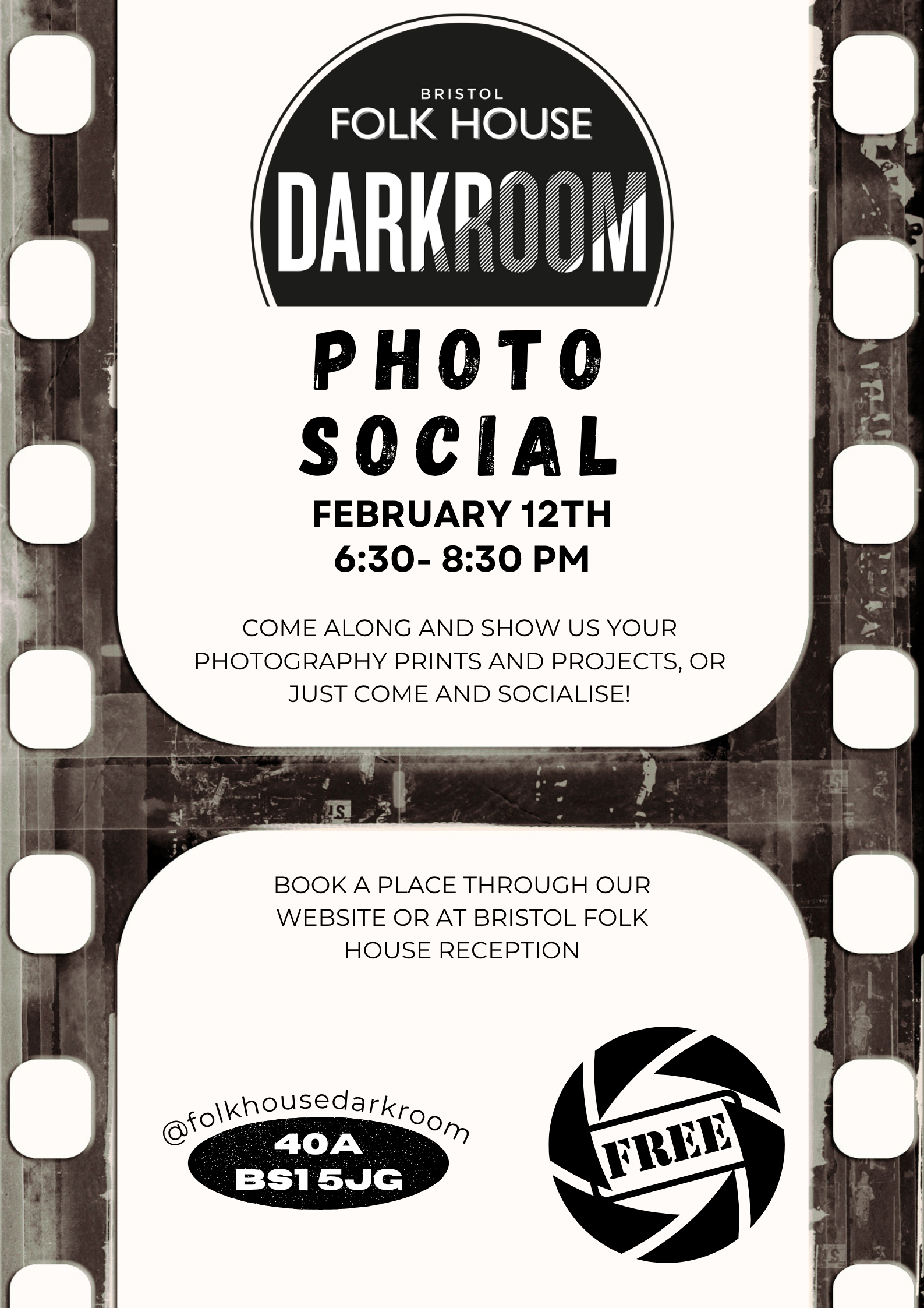 Come along to our Photo social with Folk House Darkroom!