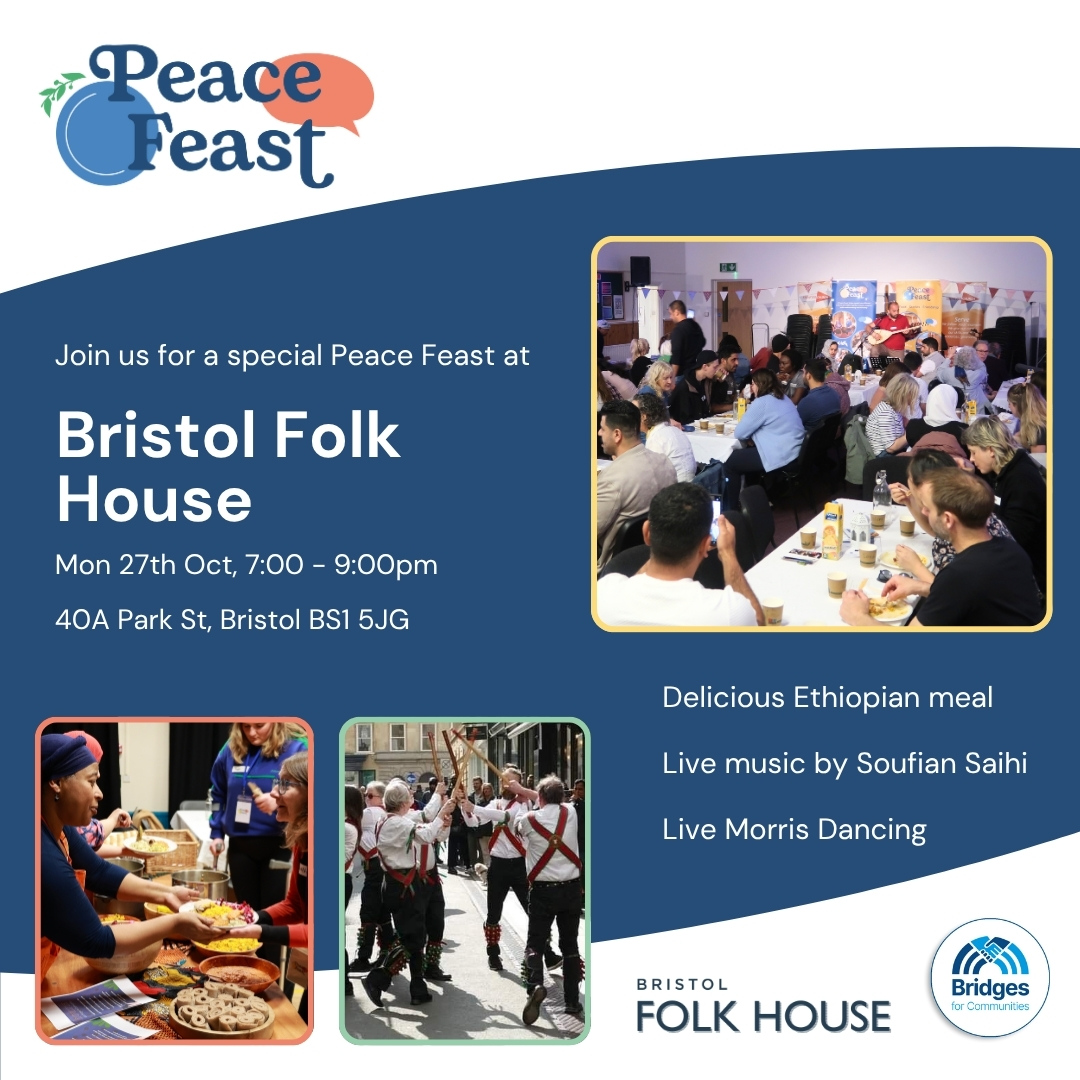 We would love to invite you to join us at this special Peace Feast at Bristol Folk House. An opportunity for the people and communities of Bristol to come together, to share a delicious meal, and to celebrate all that makes this city so special.